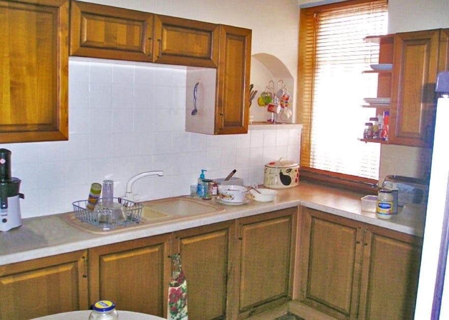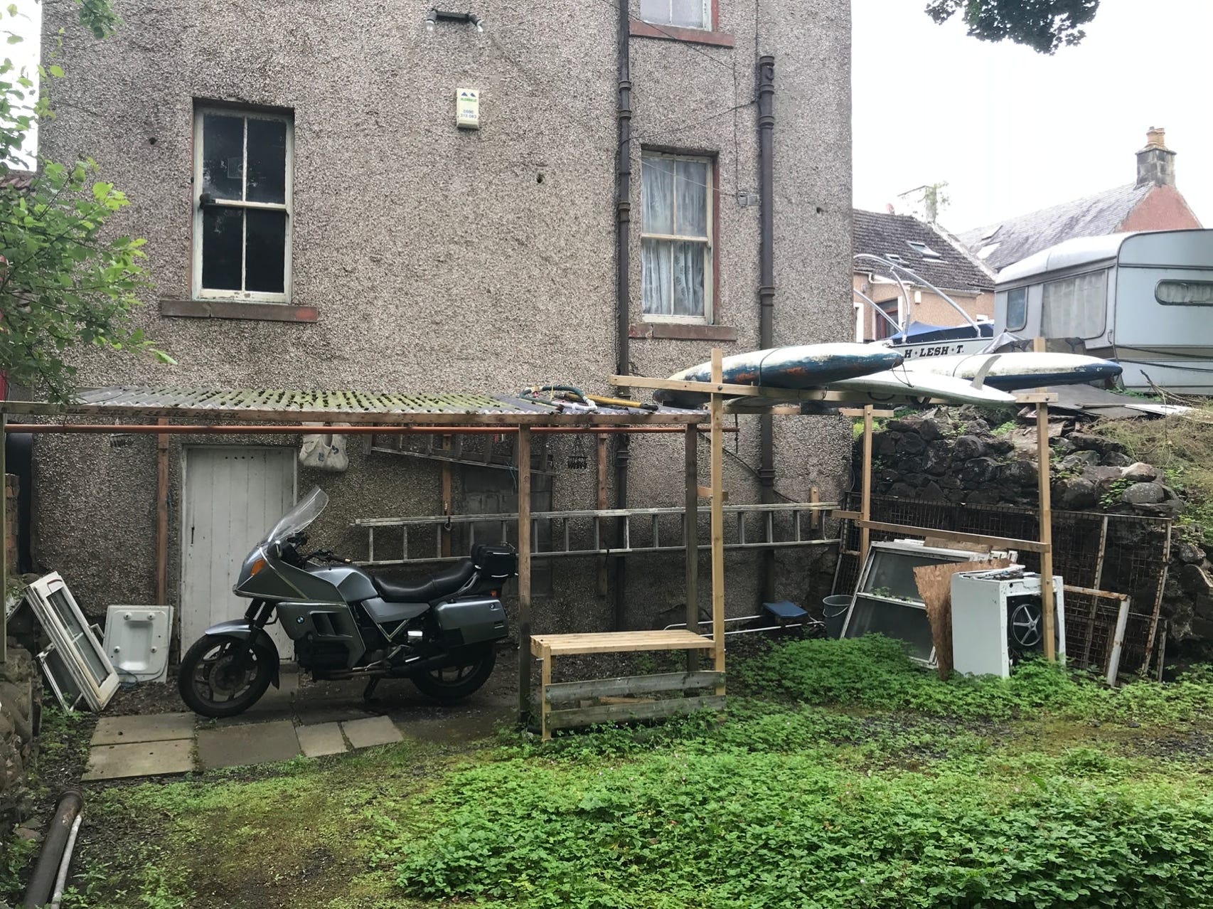 The house next door is on a lower level than the main part of the house, so that only the roof space is attached to our gable end.